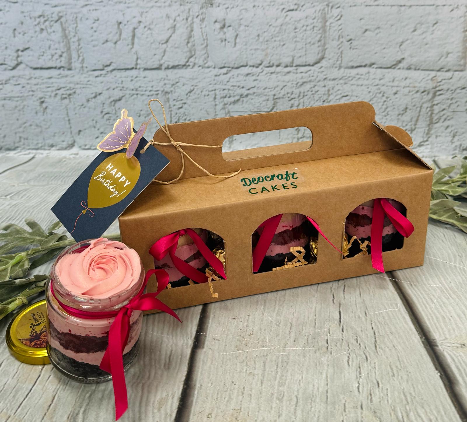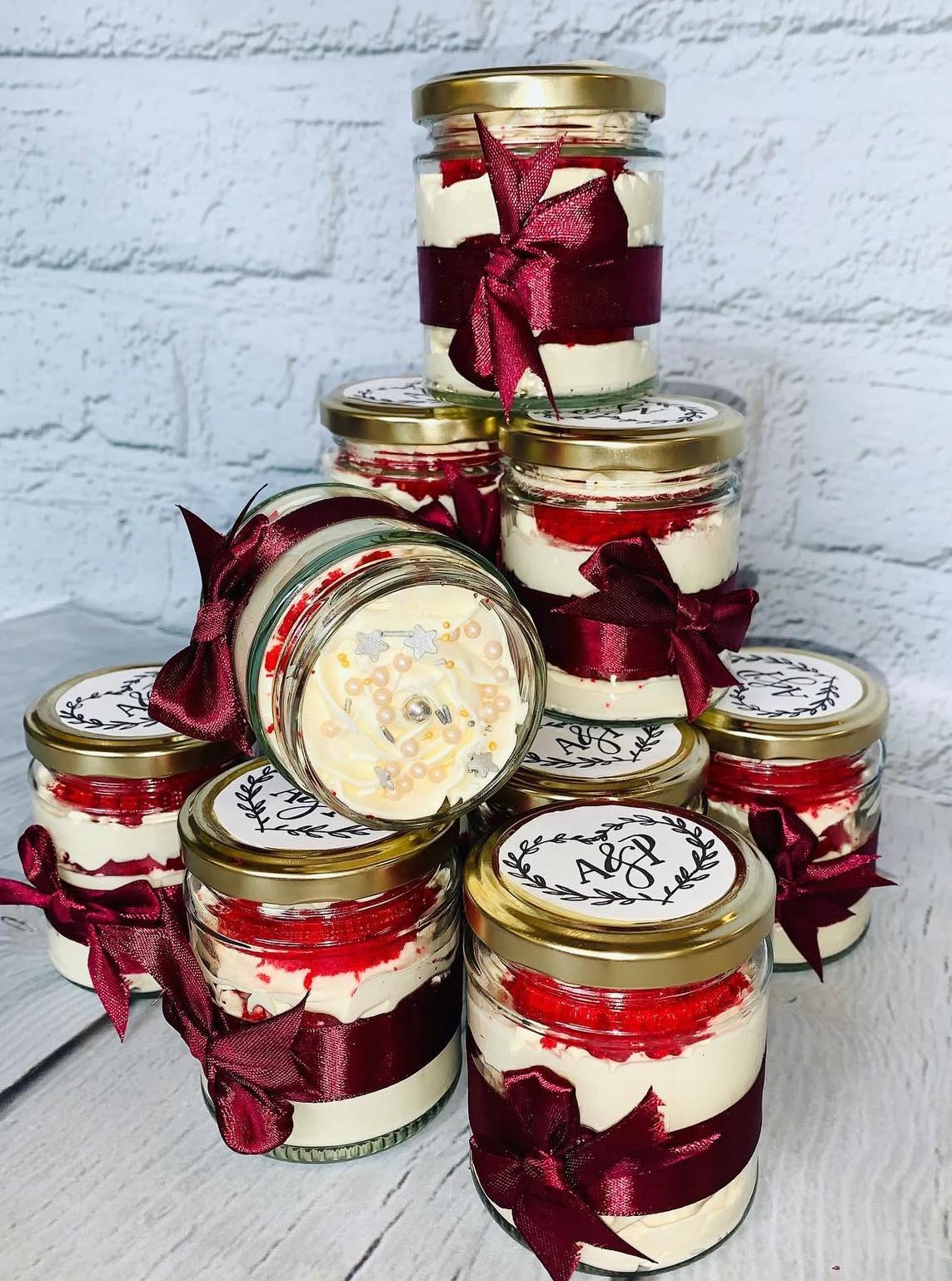 Our Cakes in a Jar are deliciously layered with moist cake, luscious frosting, and indulgent fillings—neatly packed in a mess-free, portable jar. They’re ideal for party favours, thoughtful gifts, dessert tables, or simply treating yourself.